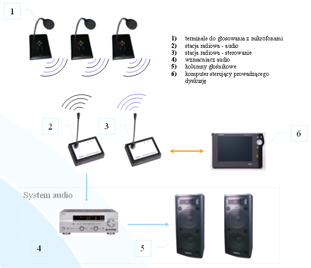 (nadawczo - odbiorczej), wzmacniacza, zestawu głośników oraz