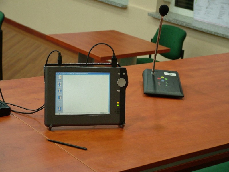 Pulpit przewodniczącego i mikrofon bezprzewodowy z funkcją głosowania